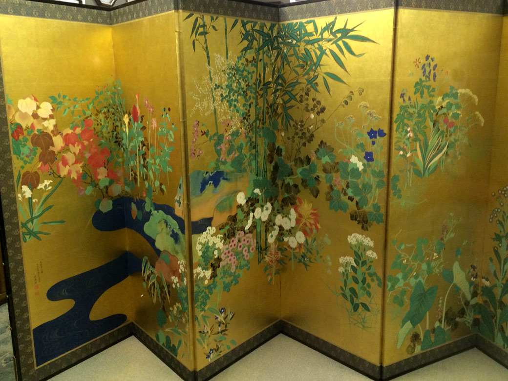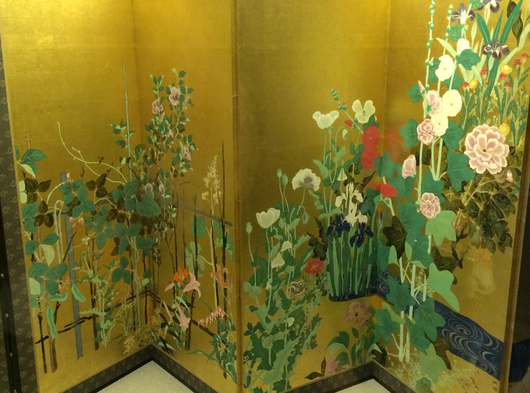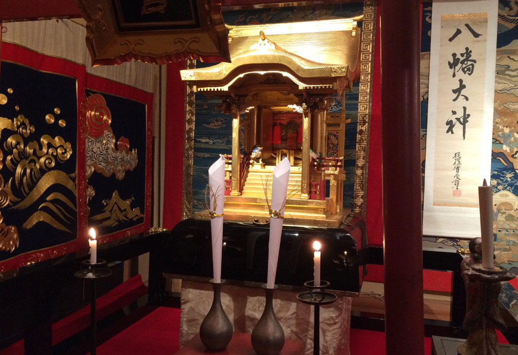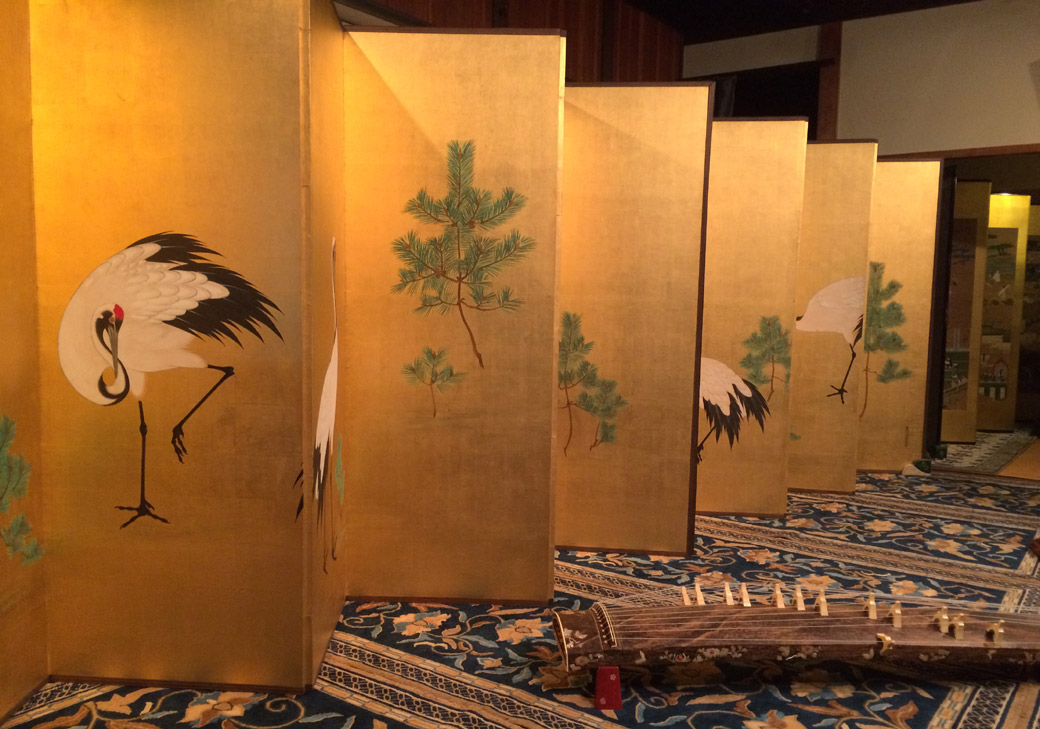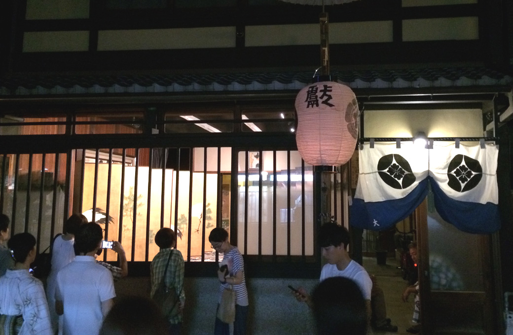 During these Yoiyama nights, in the Yamahoko-cho area Kyomachiya (old family houses and established business houses of Kyotian-style) remove the lattice doors and show what is called “Byobu-kazari” (the decoration with their family heirlooms and folding screens). So the event is also known as the Byobu Matsuri or Folding Screen Festival.