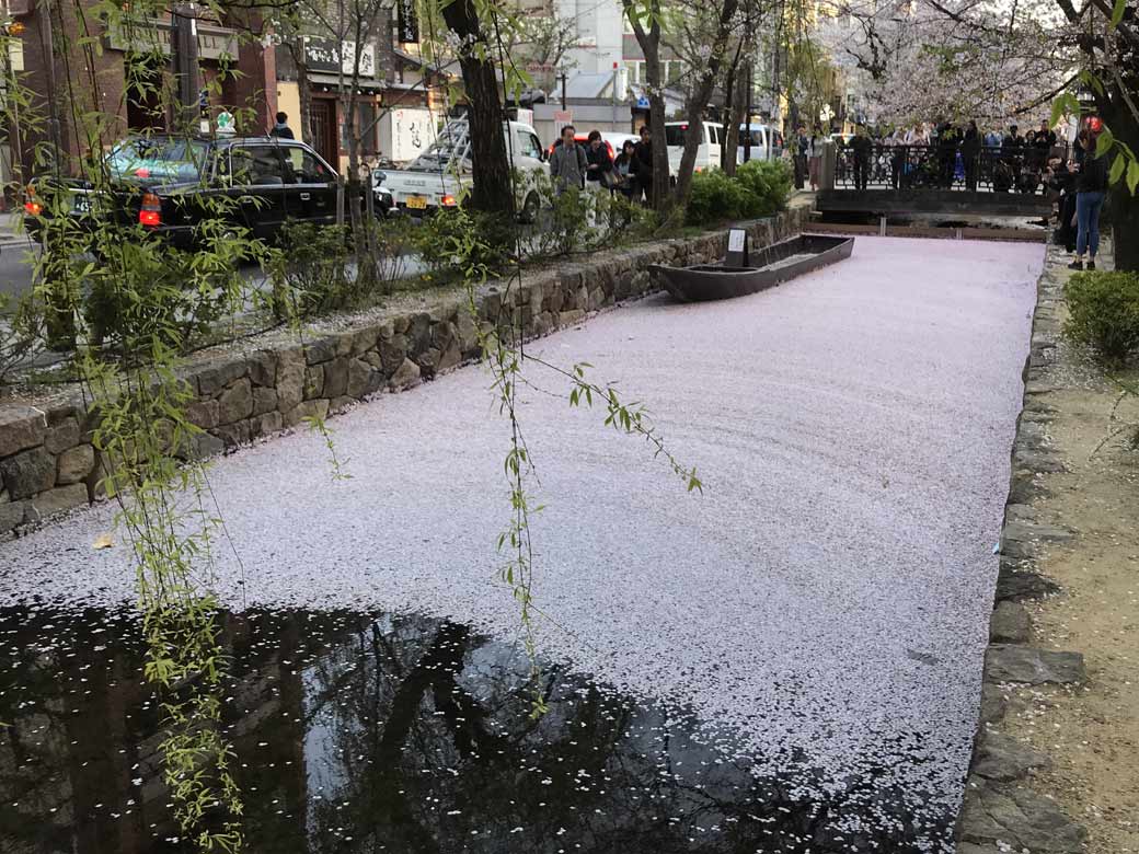 Enjoy following Kiyamachi Street along the cherry blossoms, from “Ichino Funairi” which is a scenic spot, to downtown. ”Ichino Funairi” See Map. Around Sanjo Street The cherry blossoms here have already begun to fall, and the large amount of petals are accumulating in the Takasegawa River. Look! These are all petals. Around Shijo Street 共有:クリックして Twitter で共有 (新しいウィンドウで開きます)Facebook で共有するにはクリックしてください (新しいウィンドウで開きます) 関連