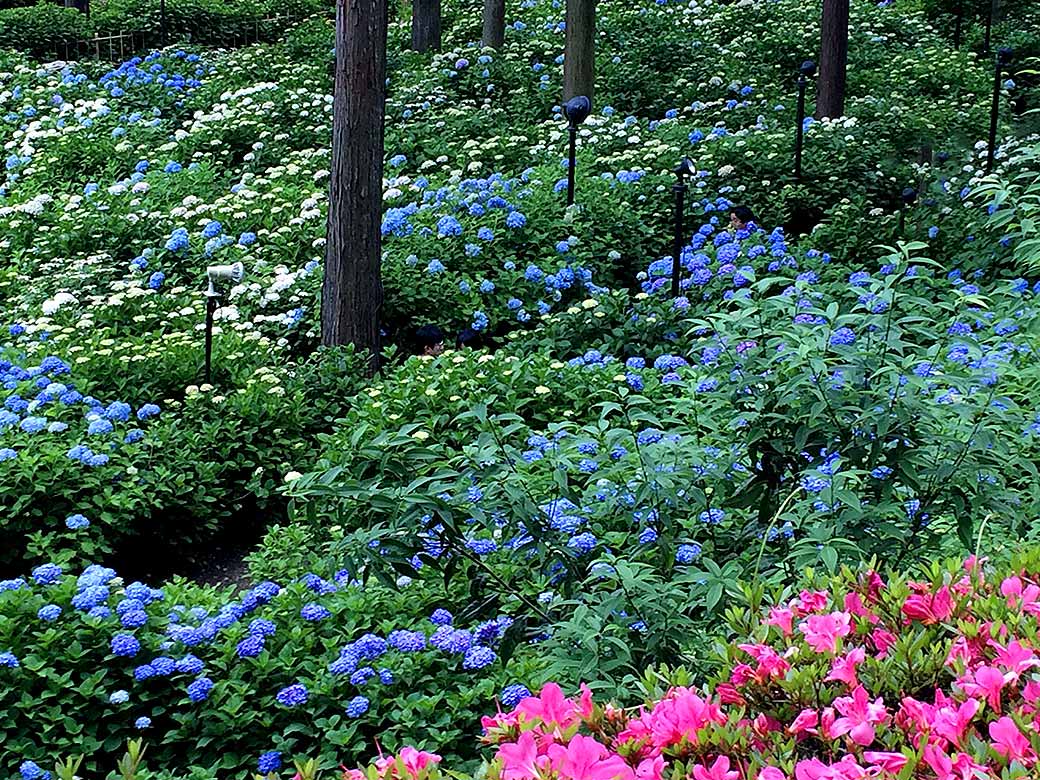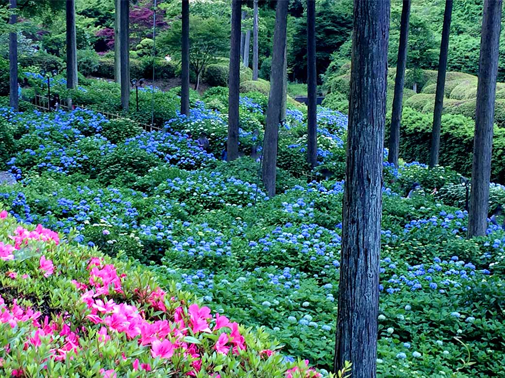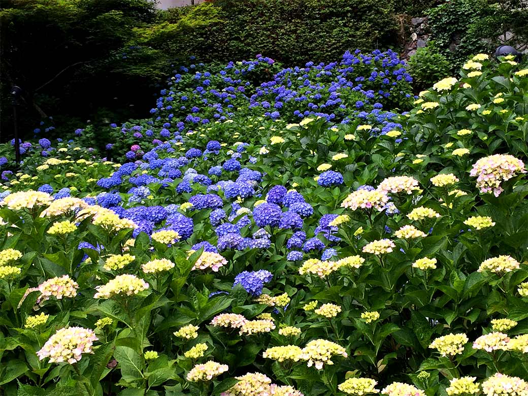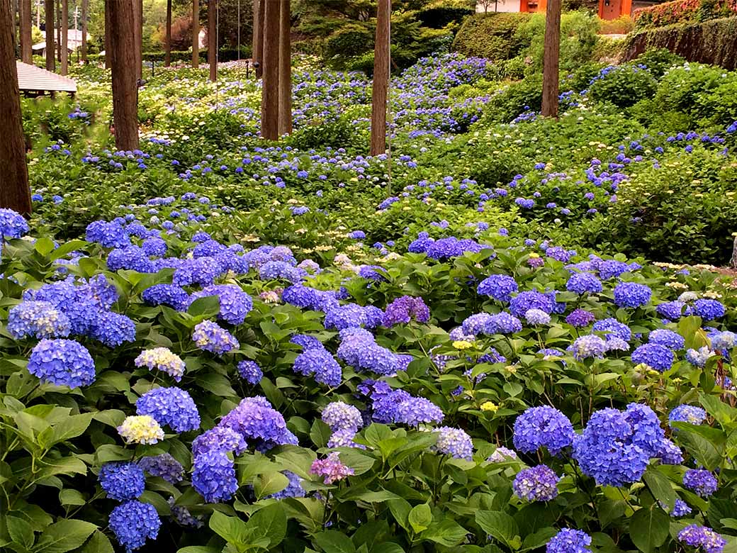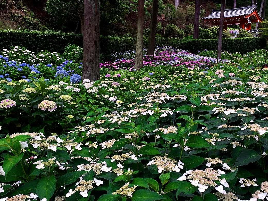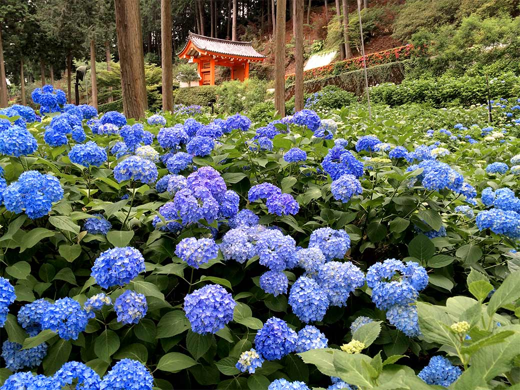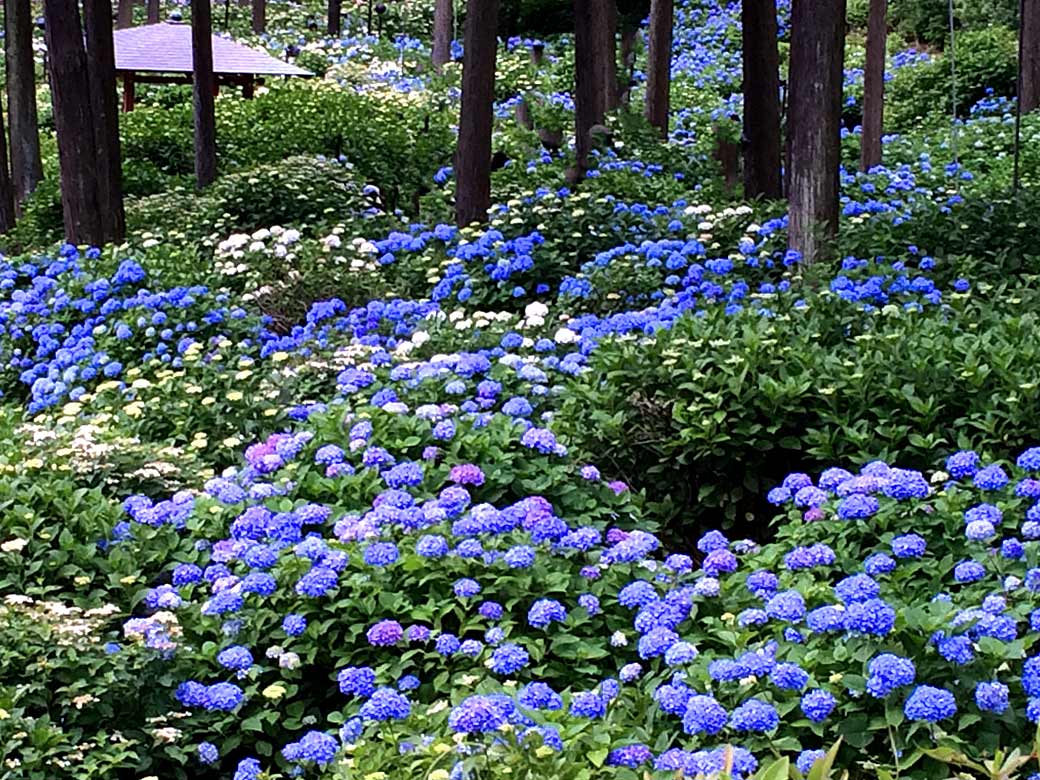 "Tsu-yu"(Rainy Season) at Mimurotoji Temple, here appears an Ajisai(Hydrangea) blue world. This temple located at south side of Kyoto has a very famous garden where 10,000-Hydrangea are planted at.