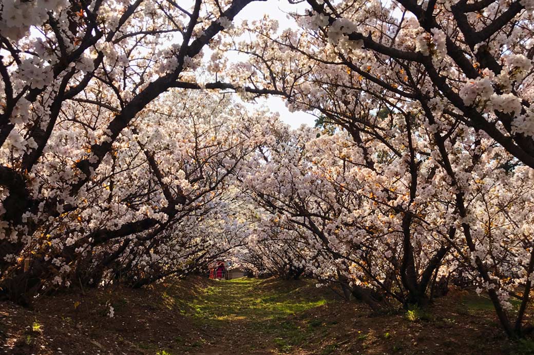 The cherry blossom garden is not in the main hall, which was formerly the Imperial Palace, but in the back of the red gate in the precincts.