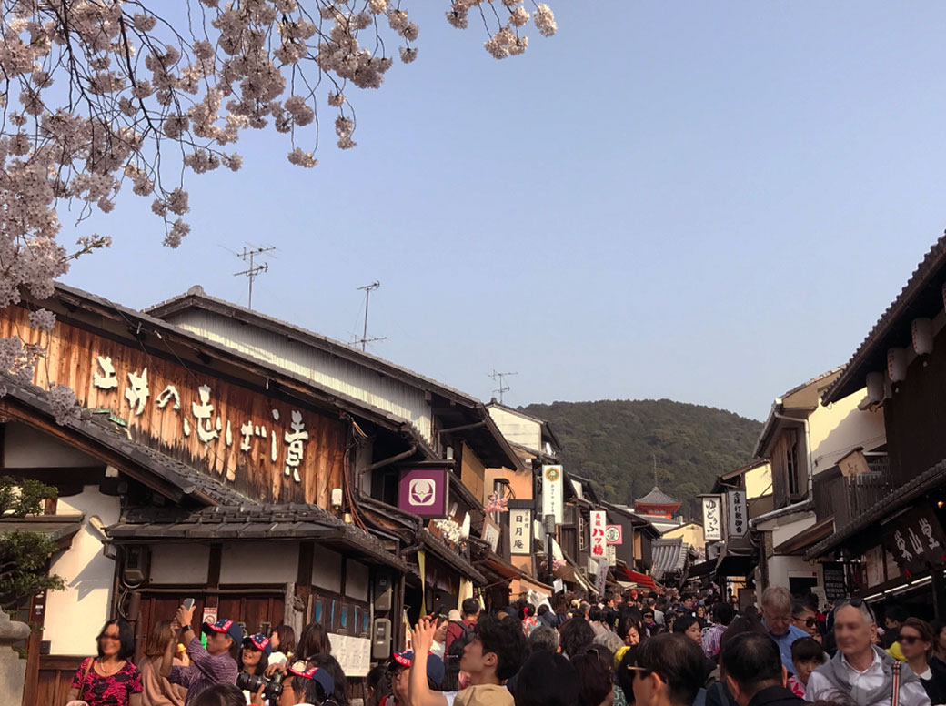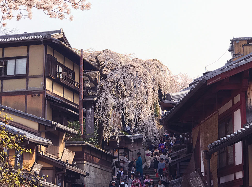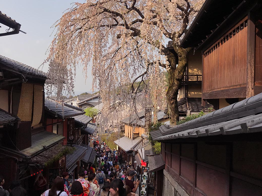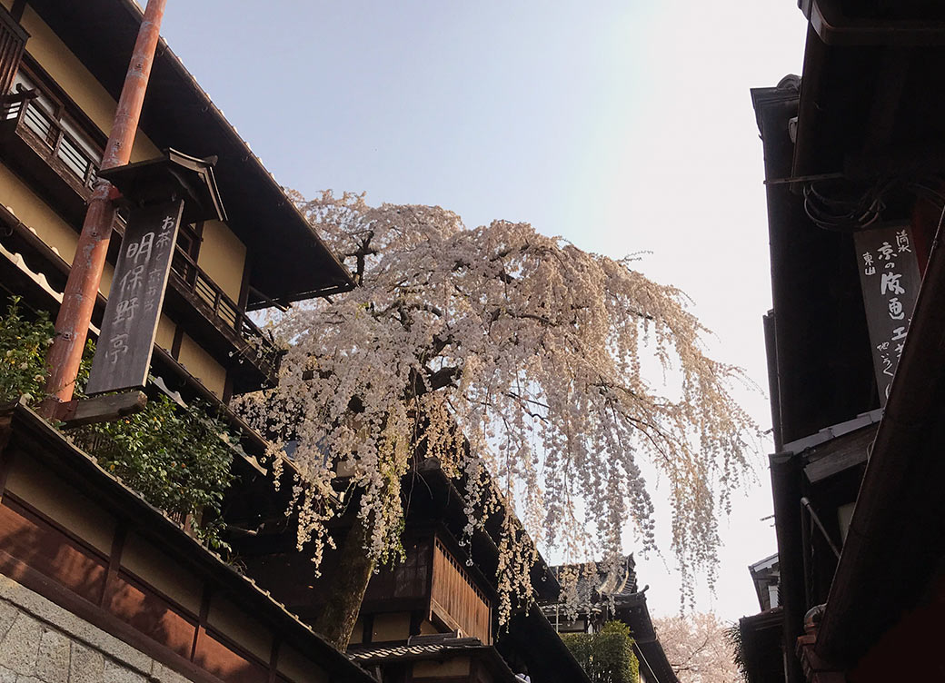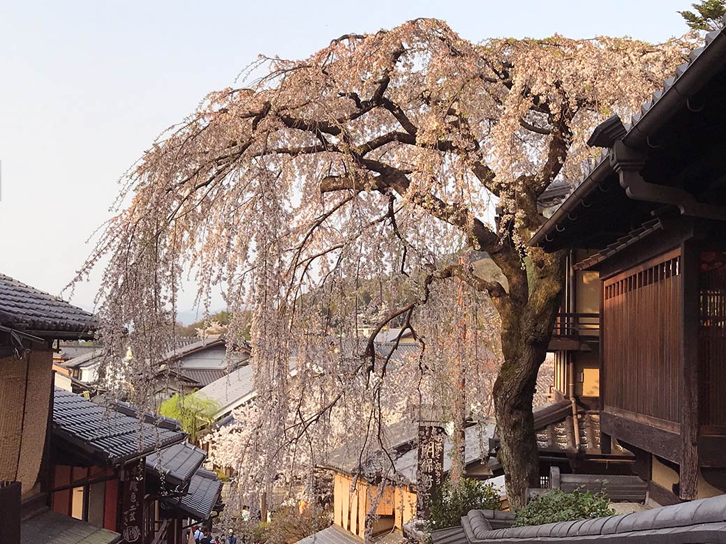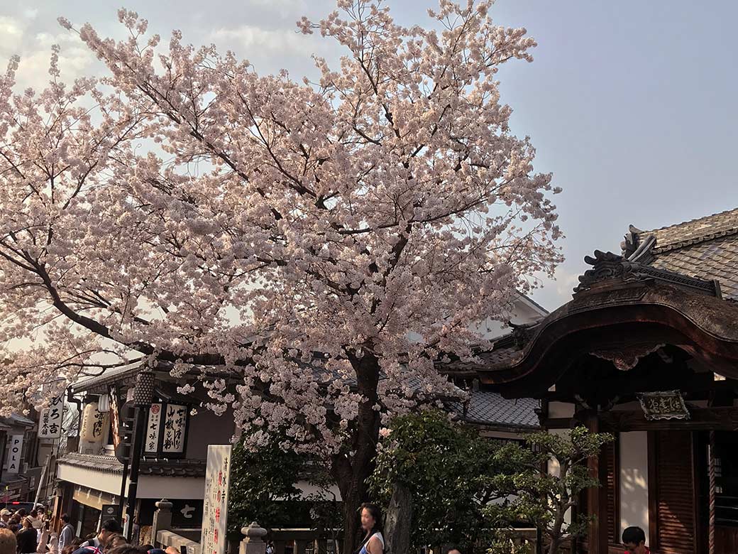 On the stone steps of “Sannenzaka”, beautiful cherry blossoms spread the branches like holding the umbrella. A part of the Golden route from Heianjigu Shrine.Kiyomizudera Temple is already right there. ( Shot on March 29)