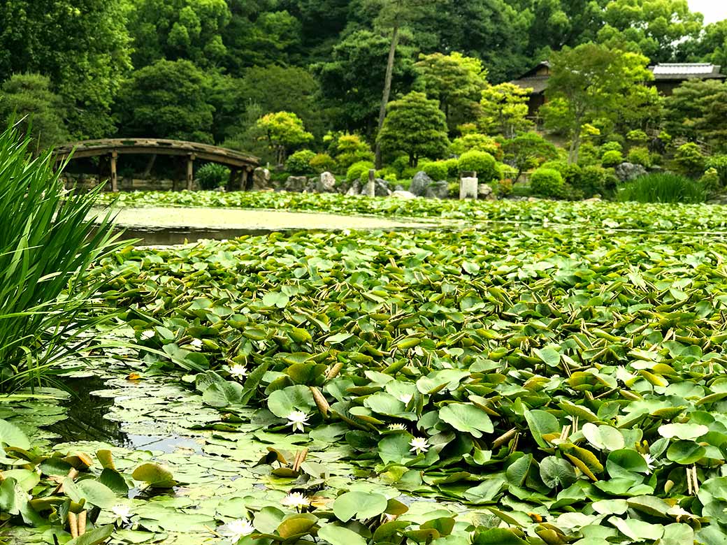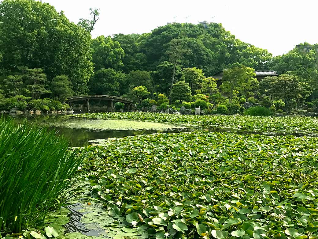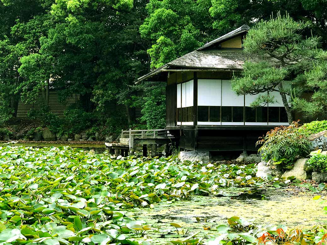 It is said that this 8-acre garden with tea rooms and the Chinese bridge etc. imitated the garden of "Minamoto-no-Toru" who is said to be the model for the main character "Hikaru Genji" in the Tale of Genji. And was built by the 3rd Shogun "Iemitsu" of the Tokugawa period in 1641.