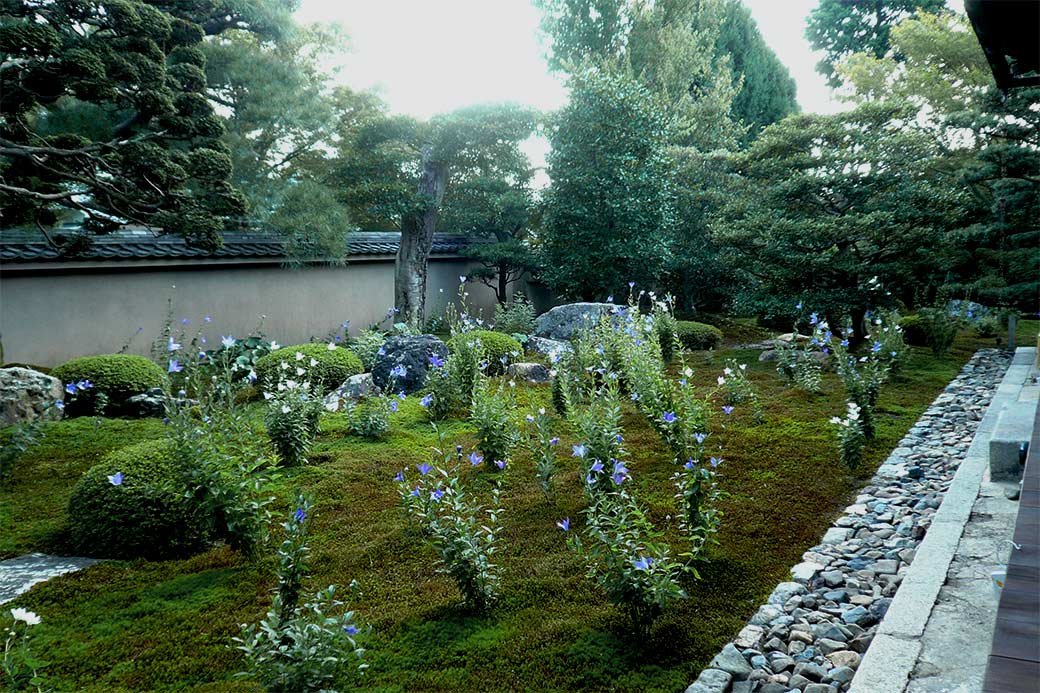 At this time, not only hydrangea but also ”bellflower” is in bloom with remarkable beauty. And is the garden of Tentokuin temple, one of the sub-temples of Tofukuji temple, is known as the blooming garden of bellflower and is open to the public only during the blooming season.
