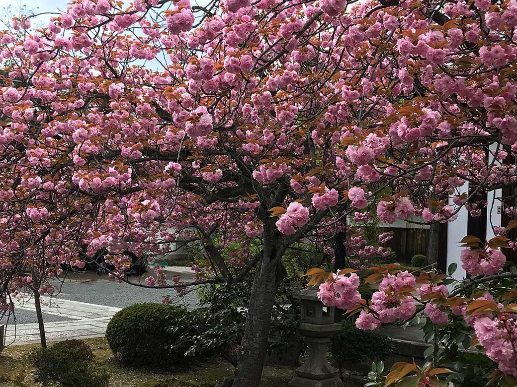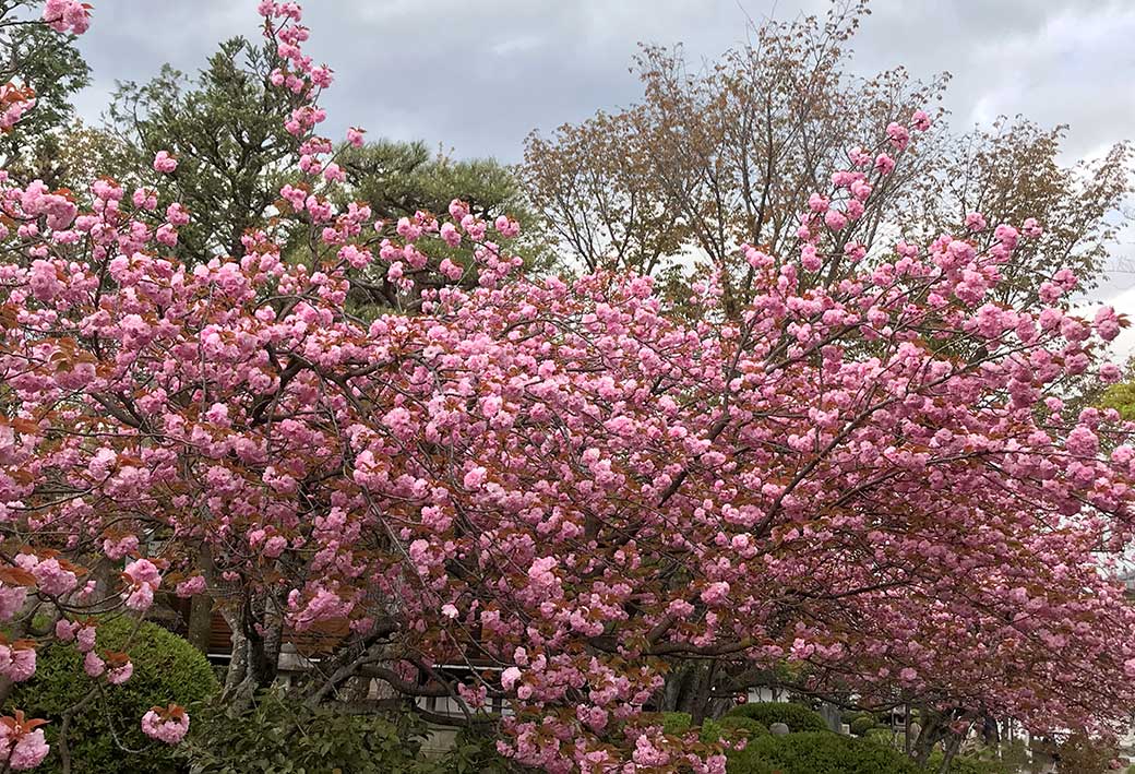 The famous drooping cherry tree has already become a leaf cherry tree. However, now double cherry blossoms are in full bloom.